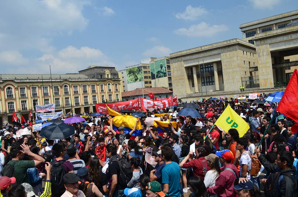 En Bogotá se tomaron con lleno total la plaza de Bolívar con pancartas, canticos y actos simbólicos acompañaron la protesta. La manifestación contó con el respaldo de colectivos artísticos, sectores sociales y centrales obreras.