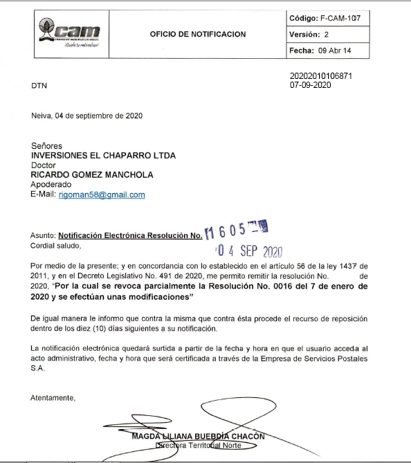 La Corporación Autónoma Regional del Alto Magdalena, CAM revocó de manera parcial el permiso para la ocupación del Cauce del humedal El Chaparro, en el oriente de Neiva.