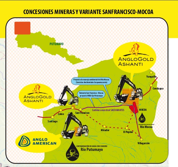 Es que el reflejo de esta situación es la construcción de la  variante San Francisco Mocoa  que afecta los ecosistemas y tiene el fin de implementar   infraestructura vial para la extracción de los recursos, esto como un supuesto “desarrollo” regional y que corresponde al mega proyecto de infraestructura IIRSA. A lo que se suma la situación de conflicto, la presencia de  fuerza pública crea problemas de seguridad, y genera persecución a los procesos sociales y estigmatiza la protesta social.