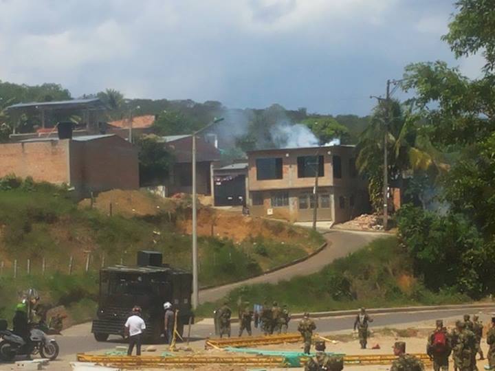 La ciudad está altamente militarizada, se denuncia como el Ejército viene disparando contra los campesinos y sobre las nueve de la noche no cesa la persecución y arremetida contra el campesinado. El comunicador Blaismir Blas González denunció que el Esmad arroja gases a las casas del barrio el Gaitán y Primavera en el sector uno de las Malvinas, “afectando a niños y ancianos, en este momento la fuerza pública está abusando de autoridad llevándose a quienes este en las esquina para mostrar resultado ficticio”.