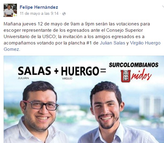 Hernández contó con el respaldo del alcalde Lara y  del hoy diputado,  también joven del mismo partido y  de la misma maquinaria, Óscar Urueña que ha logrado escalar políticamente con el apoyo de ese equipo. Las redes se extienden hasta la Universidad Sucolombiana, espacio de donde Urueña fue representante  de los egresados ante el Consejo  Superior Universitario y  donde contó con el respaldo  de esa maquinaria verde en  la que participa Cangrejo.   En las últimas elecciones de egresados, la cosa no fue diferente, ahí estuvo el equipo verde apoyando la plancha al superior de el exconcejal de Baraya, Virgilio Huergo Gómez. Campaña en la que el concejal Hernández expresó claramente su respaldo. Igual que el diputado Urueña,   allegado a Cangrejo y a su hermano,  Iván Alfredo Cangrejo.