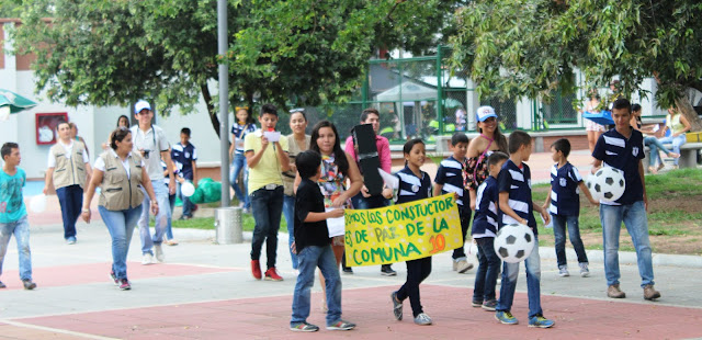 Niños y niñas constructores de paz, se tomaron las calles de su comuna. En sus rostros las sonrisas se conjugaban con la pinta de la paz, esa misma que portaban en banderas blancas mientras sonaba el redoblante e invitaban a la comunidad a un carnaval para que escucharan sus programas radiales.