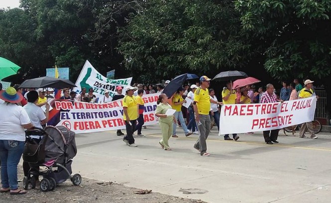 En municipios como Paujil también se realizaron marchas. El líder, Rosemary Betancourt Claros, manifestó que fue un día para la historia del Municipio; “los habitantes del Paujil, respondieron de forma positiva a esta convocatoria municipal y Departamental. Nos vamos con toda por la consulta popular; queremos agua petróleo no”. (Ver Video: marcha Paujil)