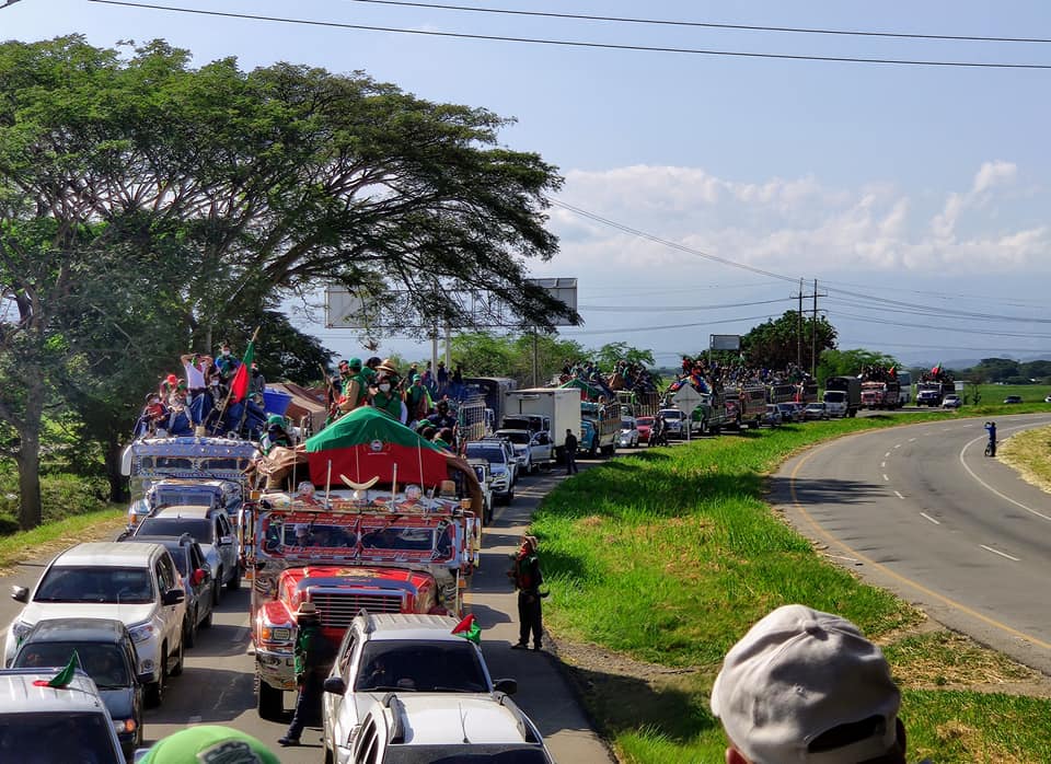 La Minga Social y Comunitaria del Suroccidente por la Defensa de la Vida, el Territorio, la Democracia y la Paz, proveniente del Cauca arribó el 12 de octubre a Cali. En chivas, motos y caminando más de 10mil personas pertenecientes a organizaciones sociales e indígenas entraron por Jamundí hasta coliseo del Pueblo en Cali.