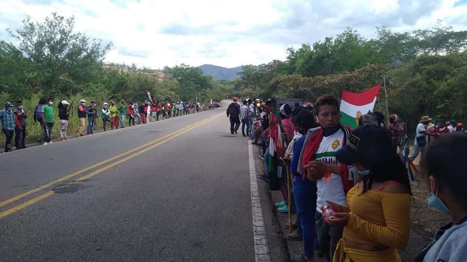 El 12 de octubre en horas de la tarde más de 2.500 indígenas del departamento de Huila llegaron al puente El pescador en la vía al municipio de Hobo.