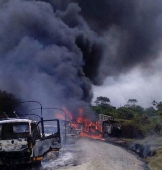 En la vía Quibdó - Pereira en el marco del paro de los paramilitares varios vehículos han sido incinerados.