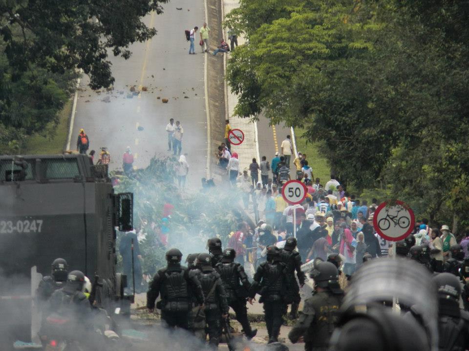 En Bogotá el dos de mayo la Policía agredió a campesinos desplazados, más de dos mil desplazados que se tomaron un lote baldío en carrera 30 con calle 19 para exigir las garantías de sus derechos. “El Gobierno Nacional no nos ha cumplido con la entrega de viviendas”. En este operativo de les forcejó a los menores de edad de las manos de sus padres. Incluso el Comandante de Policía TC. Carlos Meléndez amenazó de judicialización a Diego Martínez secretario Ejecutivo Nacional del CPDH y Alfonso Secretario Nacional de ANDAS quienes realizan acompañamiento a los desplazados.