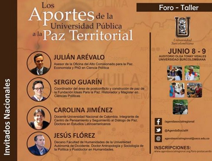 Se realizará en Neiva el  Foro-Taller: "Los aportes de la Universidad Pública a la Paz Territorial".