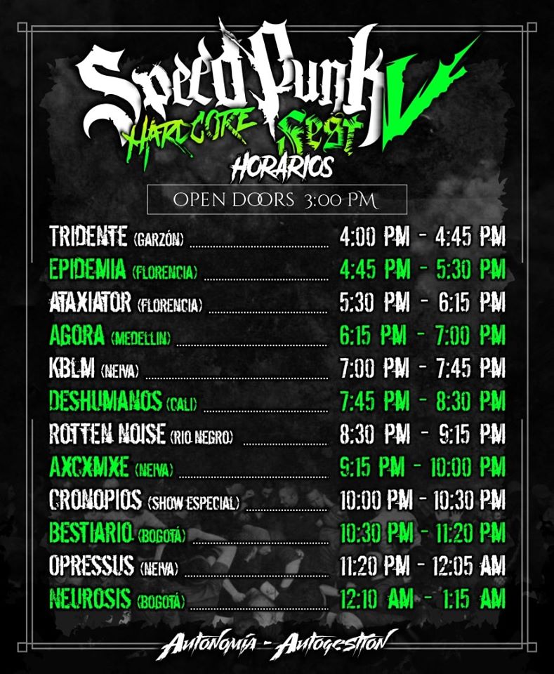 Ya está todo listo para la versión V del festival, Speed Punk Hardcore que se realizará en Neiva el sábado 7 de diciembre en Banquetes Castillo.