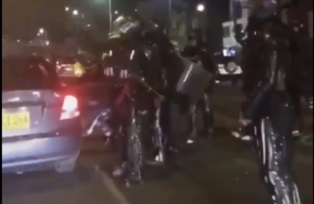 Tal como se han presentado en otros días protesta, luego de cada movilización, integrantes del Esmad en motorizadas de la Policía como si estuviera en “casería” recorren zonas aledañas practicando detenciones y golpeando transeúntes que se encuentran por el lugar.